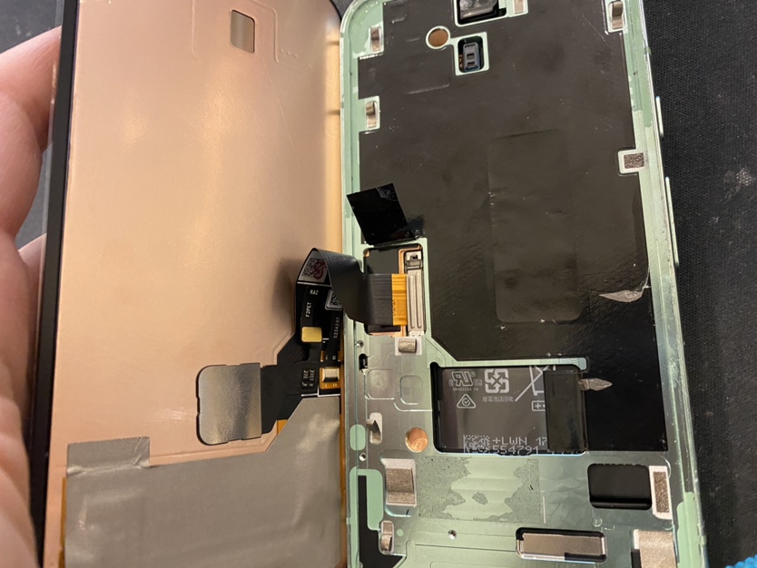 あとは、指紋センサーケーブルを移植して画面を圧着すれば画面交換修理完了となります。