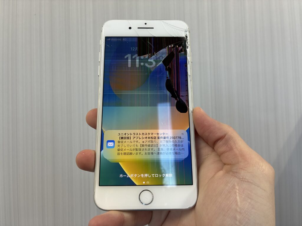 iPhone8Plusの画面交換として受付させて頂き、早速修理していきます!