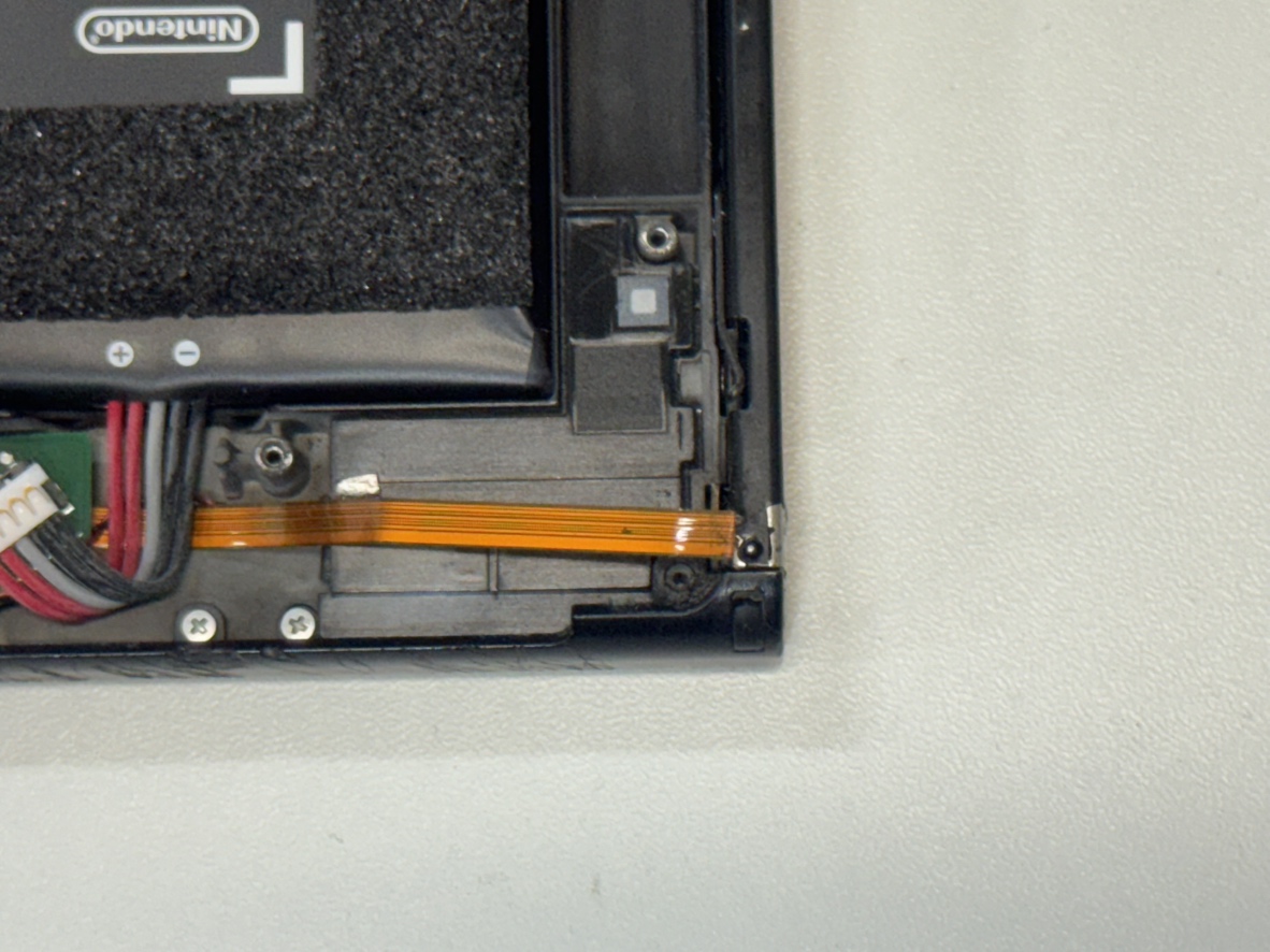 状態を確認したところ、落としたことによりガラスが割れ、液晶漏れで画面上側が黒く